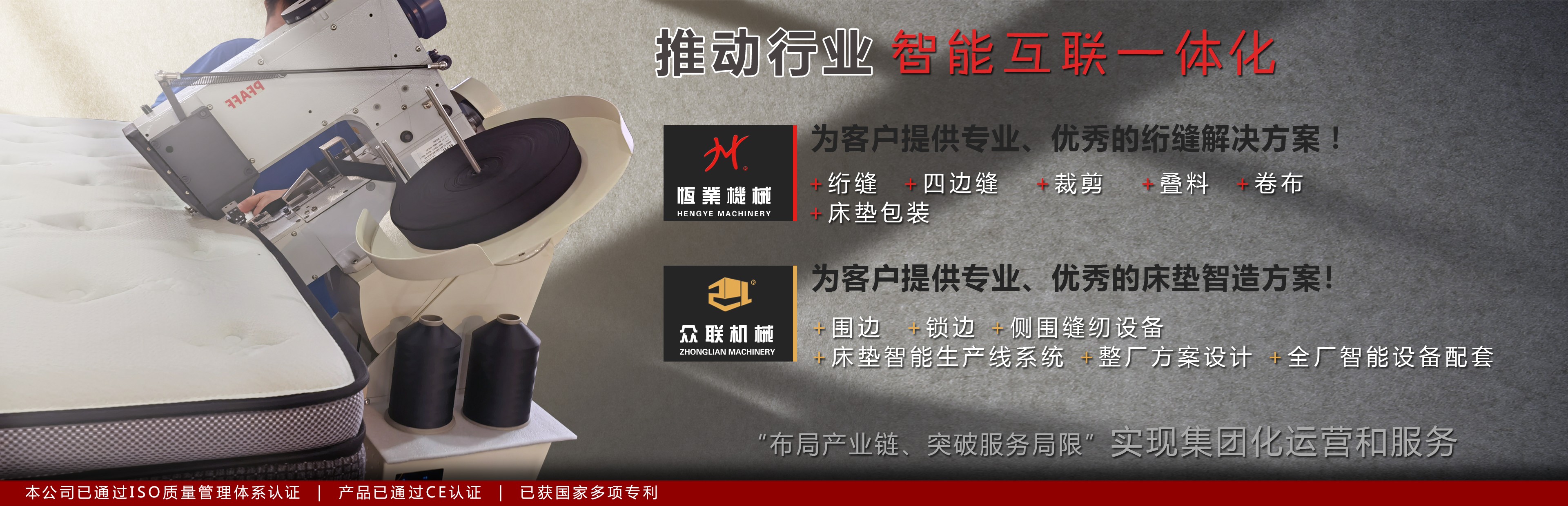 始于1991年,我們一直專注研發(fā)制造絎縫設(shè)備.為客戶提供專業(yè),優(yōu)秀的床墊&家紡智造方案!
